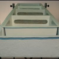 تراف انكوباتور تكنوآبزی باخصوصيات منحصر بفرد زير برای خواباندن تخم قزل آلا بهترين گزينه است: - سبدهاي نگهدارنده دارای لبه لاستيكی براي آب بندی كامل و در نتيجه جريان آب مناسب ميباشند. - سبدهای نگهدارنده هيچگونه لبه ای در داخل ندارد و در نتيجه تخم های حاشيه سبدها درجريان آبی خوبی قرار مي گيرند. - پايه انكوباتور سبك و داراي قابليت نصب در شرايط دلخواه می باشد. ** امكان تجهيز به آلارم(Alarm) برای كنترل جريان آب ورودی مزايا : - ساختار سبك و محكم - آسان در حمل - دارای پايه استيل با قابليت تنظيم ارتفاع مشخصات فنی: - ابعاد تراف:229cm *48cm * 17cm - ابعاد سبدها :46cm *44cm *14cm - وزن تراف :12kg - وزن سبد : 2 kg